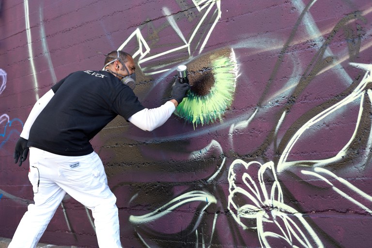 Apex, Bam, Chor, Boogie, Estria, Jase, King 157, Neonski and Vogue were all of the graffiti artists that contributed to “Rebirth” by MTN Colors.