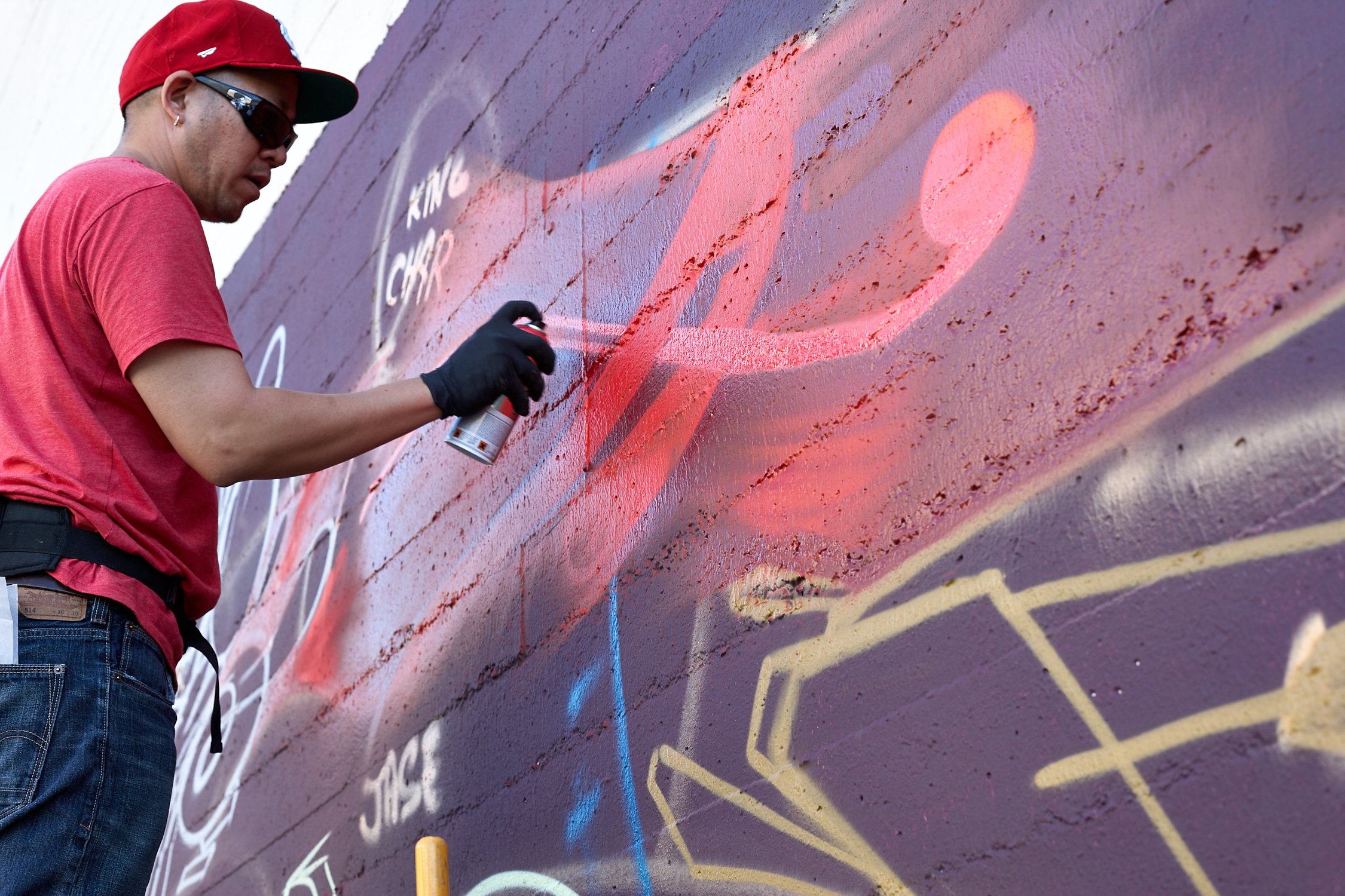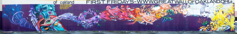 I met graffiti artist Estria Miyashiro and Mike “BAM” Tyau through a friend at the Estria Battle in Oakland, CA. They invited me to hang out with them while they were creating the mural “Rebirth” for the Great Wall of Oakland. It’s pretty cool to see a series of sketches become this beautiful piece of art.