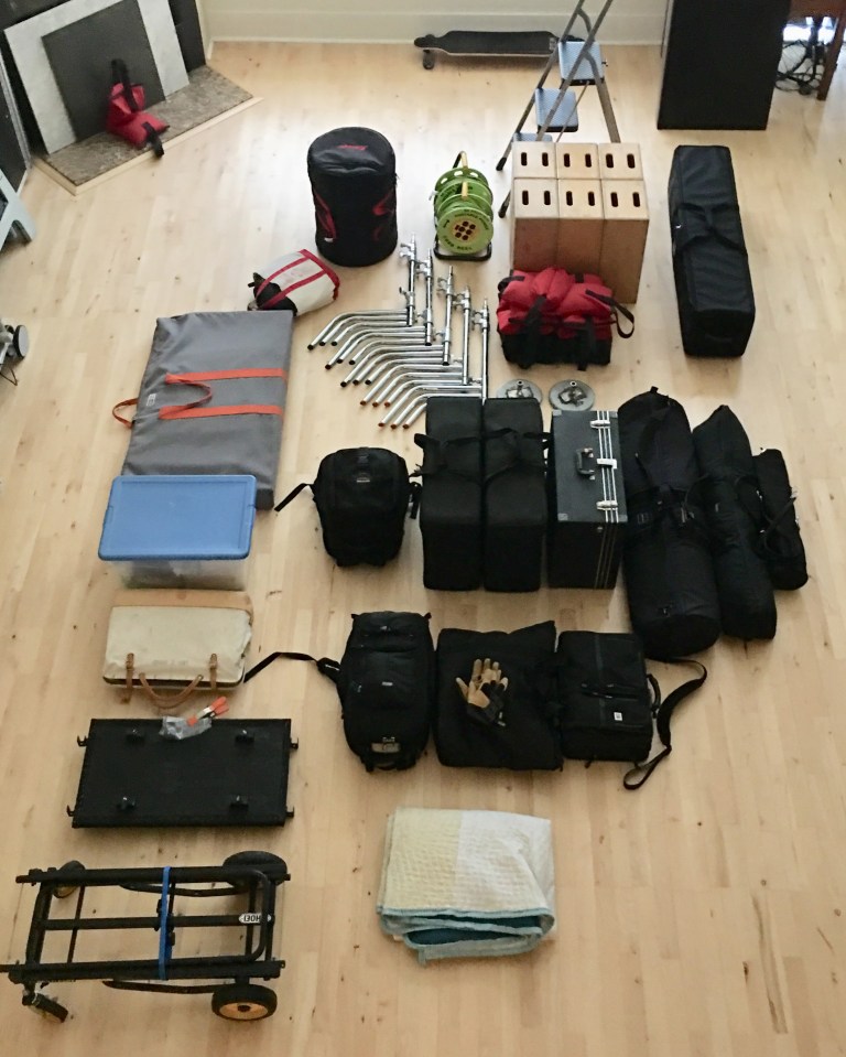 I usually do a dry run with my set-up so all of the gear taken on-location has a purpose. Most of the time location space is limited, so being organized is important.
